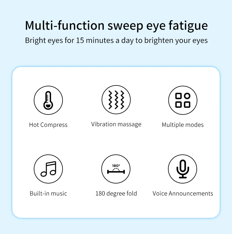 Soothing Heating Massage: Get your eyes relaxing. The eye massager adopts compression and vibration to massage your whole eyes and upper face. Built-in heating pads provide a comfortable temperature up to 107 degrees Fahrenheit (42℃). Note: If you have an eye operation, retina condition, cataract, or other eye conditions, DO consult your doctor before using.